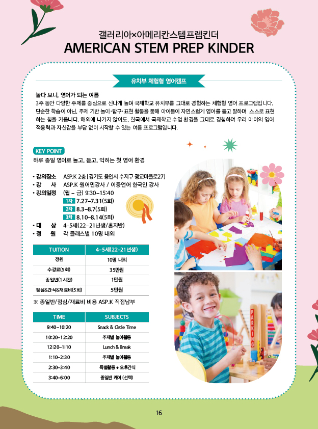 - 강사 : 아메리칸 스템프렙 원어민교사(미국 유치원정교사)+이중언어 한국인 교사