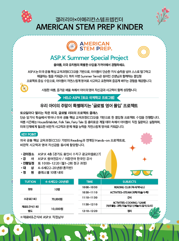 [1일.ASPK]토요 국제학교 프로그램(혼자반) (토)(8/8)(4-6세/22-20년생)상상 속 이야기 여행