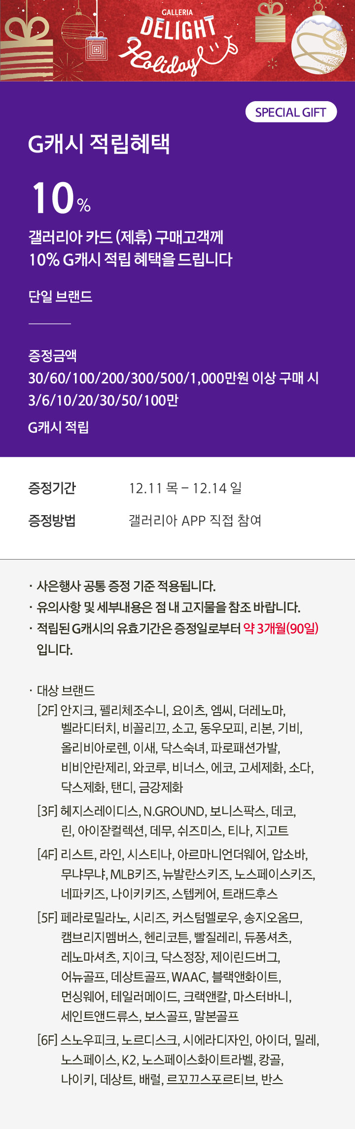 그 동안 갤러리아 수원점을 사랑해주신 고객님께 감사드립니다. 2020년 1월, 수원점은 영업종료 하였습니다. 2020년 2월 28일 오픈하는 갤러리아 광교에서 새로운 모습으로 뵙겠습니다. 감사합니다.