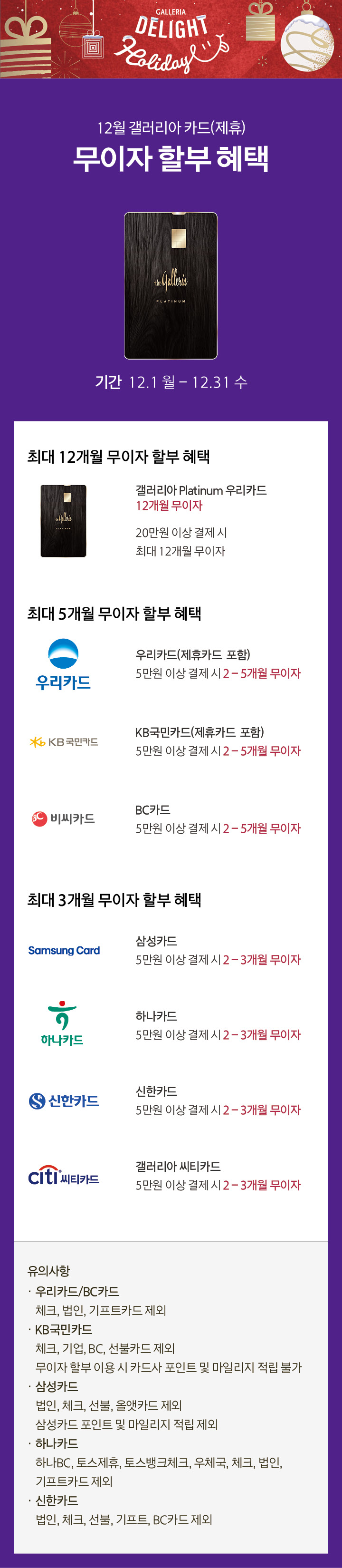 12월 갤러리아 카드(제휴) 무이자 할부 혜택