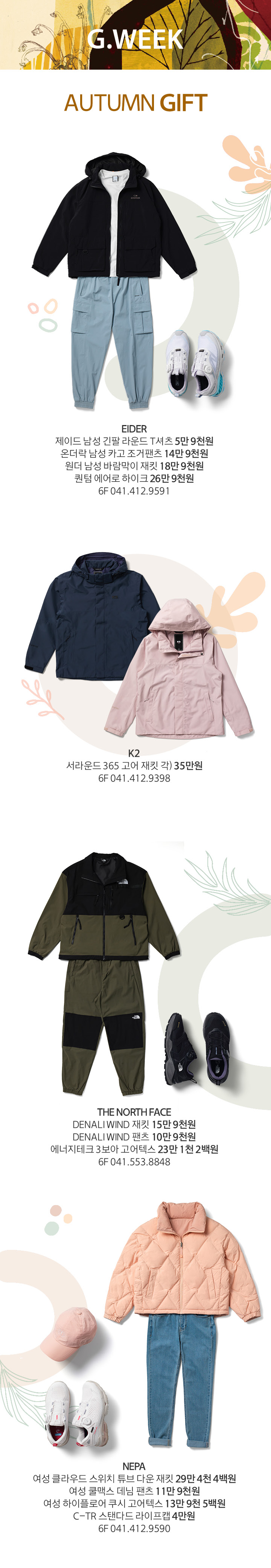 상품행사 AUTUMN GIFT 아웃도어 9.14 목 - 9.21 목 페이스북에 공유하기 카카오스토리로 공유하기 PREV 목록 NEXT 설 선물세트 예약 판매는 아래 번호로 문의 부탁드립니다. 센터시티 041.411.5309, 5311 확인