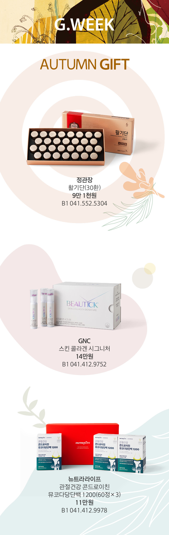 상품행사 AUTUMN GIFT 건강기프트 9.14 목 - 9.21 목 페이스북에 공유하기 카카오스토리로 공유하기 PREV 목록 NEXT 설 선물세트 예약 판매는 아래 번호로 문의 부탁드립니다. 센터시티 041.411.5309, 5311 확인