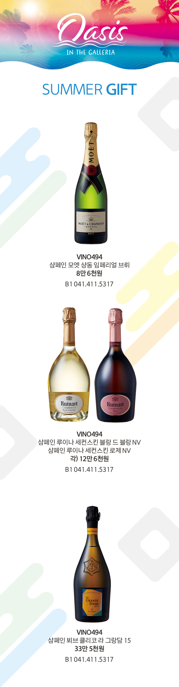 상품행사 SUMMER GIFT 와인 7.12 금 - 7.18 목 페이스북에 공유하기 카카오스토리로 공유하기 PREV 목록 NEXT 설 선물세트 예약 판매는 아래 번호로 문의 부탁드립니다. 센터시티 041.411.5309, 5311 확인