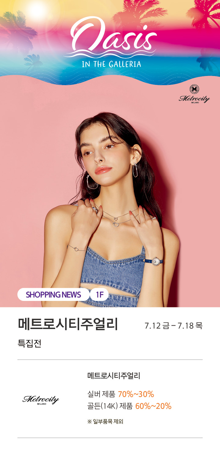 상품행사 메트로시티주얼리 특집전 7.12 금 - 7.18 목 페이스북에 공유하기 카카오스토리로 공유하기 PREV 목록 NEXT 설 선물세트 예약 판매는 아래 번호로 문의 부탁드립니다. 센터시티 041.411.5309, 5311 확인