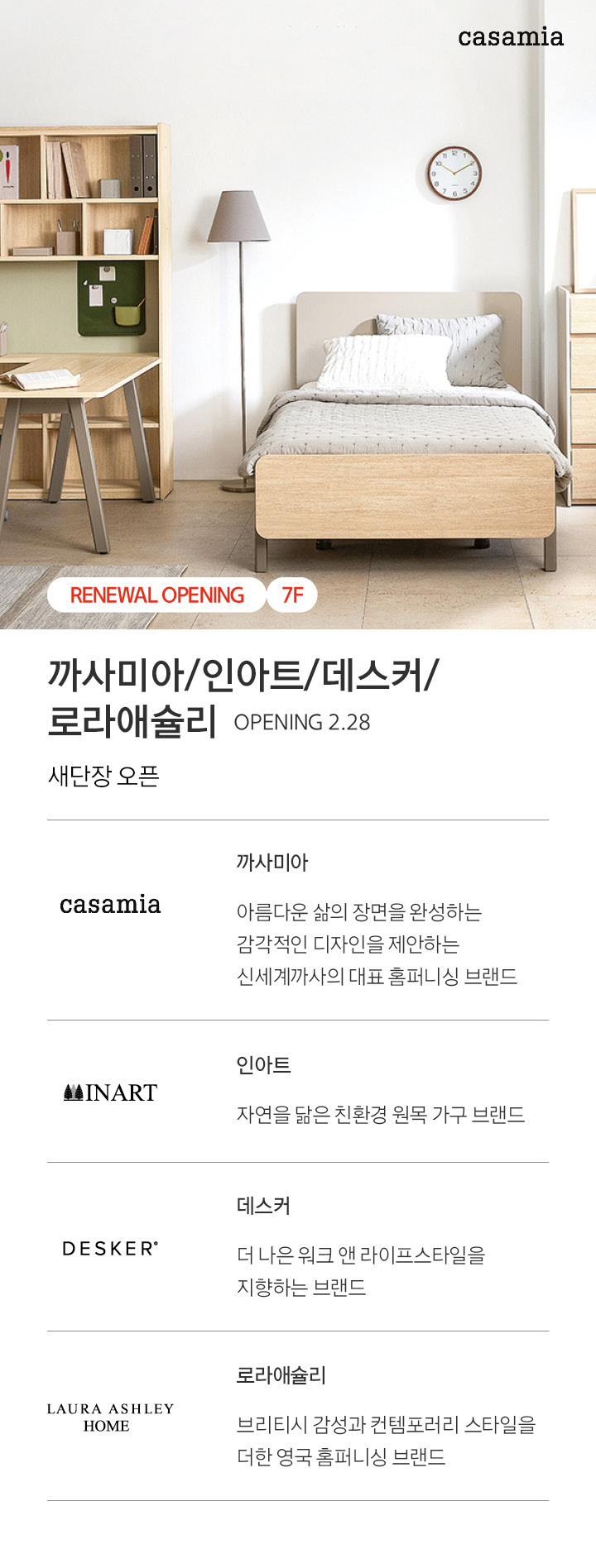 뉴오프닝&팝업 까사미아/인아트/데스커/로라애슐리 새단장 오픈 OPENING 2.28 페이스북에 공유하기 카카오스토리로 공유하기 PREV 목록 NEXT 설 선물세트 예약 판매는 아래 번호로 문의 부탁드립니다. 센터시티 041.411.5309, 5311 확인