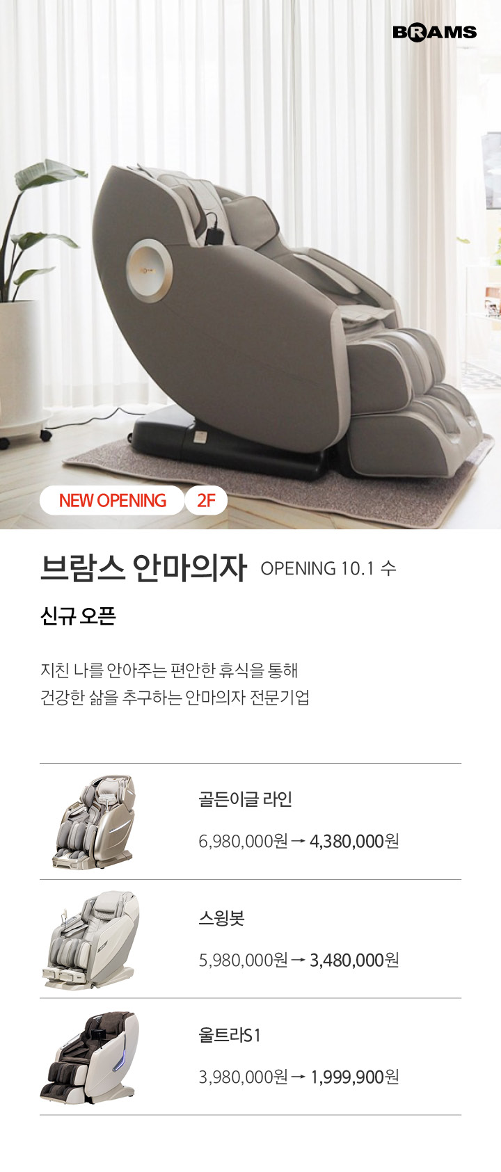 뉴오프닝&팝업 브람스 안마의자 신규 오픈 10.1 수 페이스북에 공유하기 카카오스토리로 공유하기 PREV 목록 NEXT 설 선물세트 예약 판매는 아래 번호로 문의 부탁드립니다. 센터시티 041.411.5309, 5311 확인