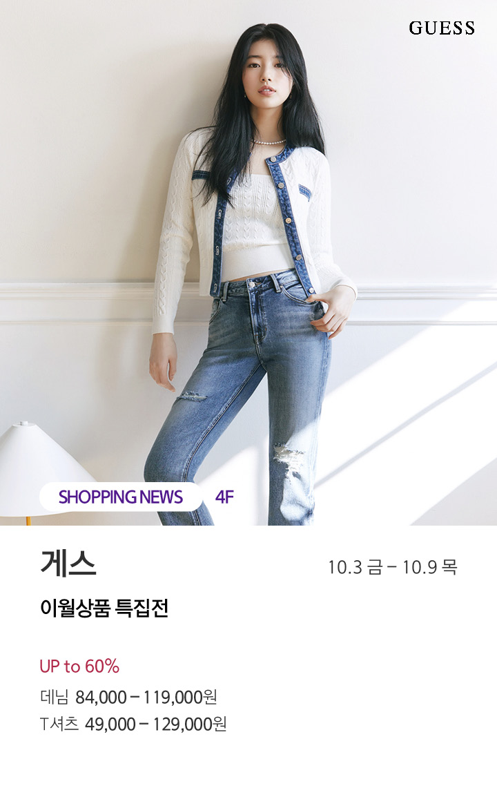 상품행사 게스 이월상품 특집전 10.3 금 - 10.9 목 페이스북에 공유하기 카카오스토리로 공유하기 PREV 목록 NEXT 설 선물세트 예약 판매는 아래 번호로 문의 부탁드립니다. 센터시티 041.411.5309, 5311 확인