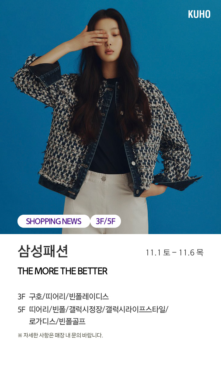 상품행사 삼성패션 THE MORE THE BETTER 11.1 토 - 11.6 목 페이스북에 공유하기 카카오스토리로 공유하기 PREV 목록 NEXT 설 선물세트 예약 판매는 아래 번호로 문의 부탁드립니다. 센터시티 041.411.5309, 5311 확인