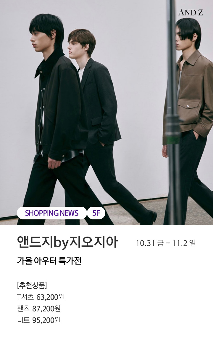 상품행사 앤드지by지오지아 가을 아우터 특가전 10.31 금 - 11.2 일 페이스북에 공유하기 카카오스토리로 공유하기 PREV 목록 NEXT 설 선물세트 예약 판매는 아래 번호로 문의 부탁드립니다. 센터시티 041.411.5309, 5311 확인