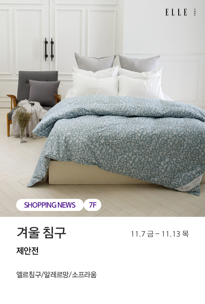 상품행사 겨울 침구 제안전 11.7 금 - 11.13 목 페이스북에 공유하기 카카오스토리로 공유하기 PREV 목록 NEXT 설 선물세트 예약 판매는 아래 번호로 문의 부탁드립니다. 센터시티 041.411.5309, 5311 확인