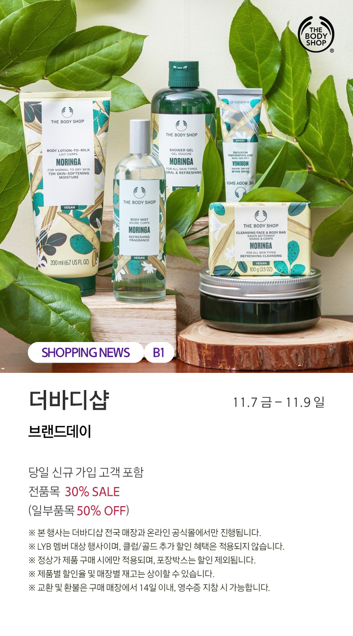 상품행사 더바디샵 브랜드데이 11.7 금 - 11.9 일 페이스북에 공유하기 카카오스토리로 공유하기 PREV 목록 NEXT 설 선물세트 예약 판매는 아래 번호로 문의 부탁드립니다. 센터시티 041.411.5309, 5311 확인