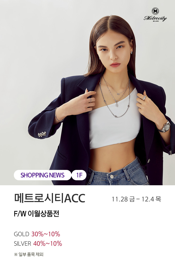 상품행사 메트로시티ACC F/W 이월상품전 11.28 금 - 12.4 목 페이스북에 공유하기 카카오스토리로 공유하기 PREV 목록 NEXT 설 선물세트 예약 판매는 아래 번호로 문의 부탁드립니다. 센터시티 041.411.5309, 5311 확인