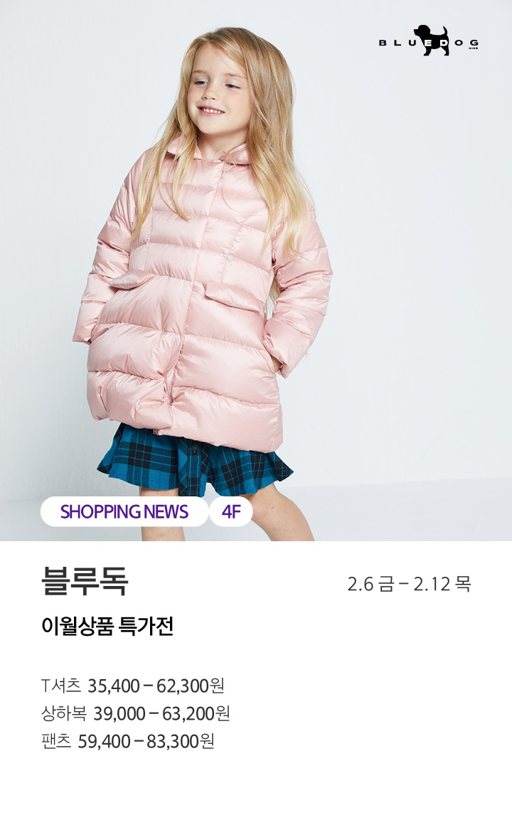 상품행사 블루독 이월상품 특가전 2.6 금 - 2.12 목 페이스북에 공유하기 카카오스토리로 공유하기 PREV 목록 NEXT 설 선물세트 예약 판매는 아래 번호로 문의 부탁드립니다. 센터시티 041.411.5309, 5311 확인