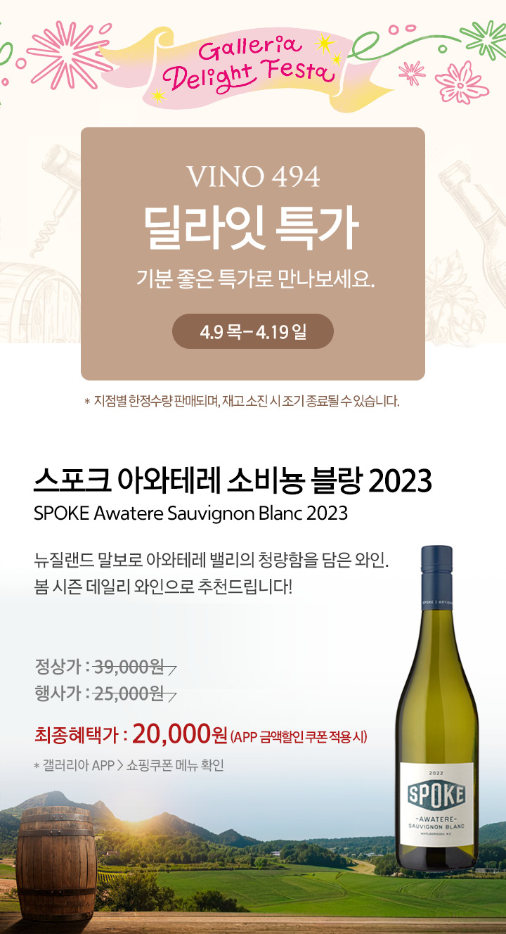 상품행사 스포크 아와테레 소비뇽 블랑 2023 딜라잇 특가 4.9 목 - 4.19 일 페이스북에 공유하기 카카오스토리로 공유하기 PREV 목록 NEXT 설 선물세트 예약 판매는 아래 번호로 문의 부탁드립니다. 센터시티 041.411.5309, 5311 확인