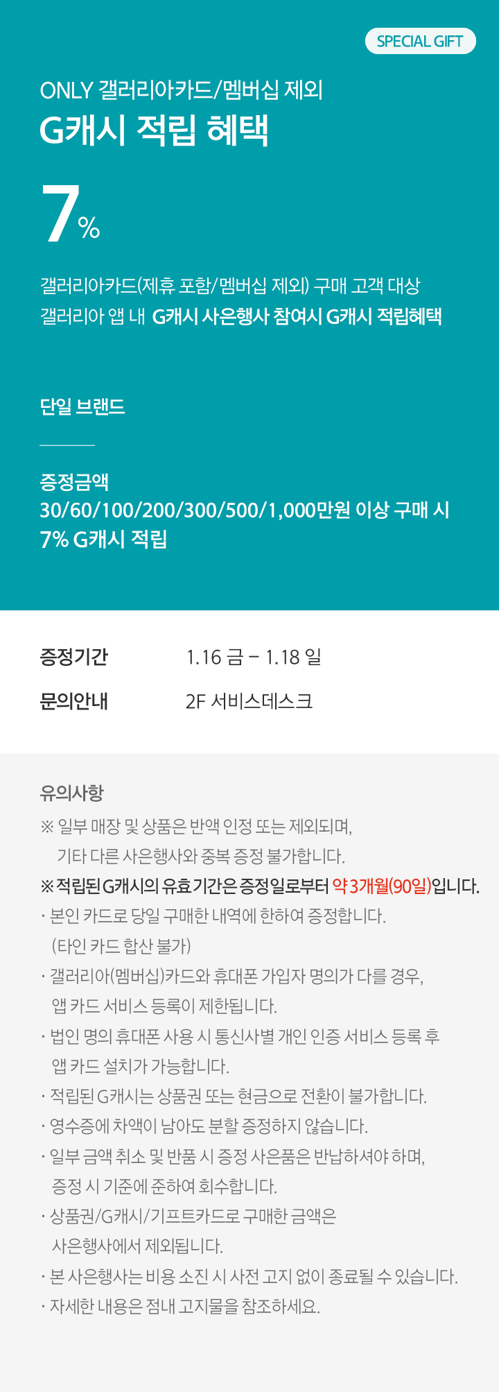 그 동안 갤러리아 수원점을 사랑해주신 고객님께 감사드립니다. 2020년 1월, 수원점은 영업종료 하였습니다. 2020년 2월 28일 오픈하는 갤러리아 광교에서 새로운 모습으로 뵙겠습니다. 감사합니다.