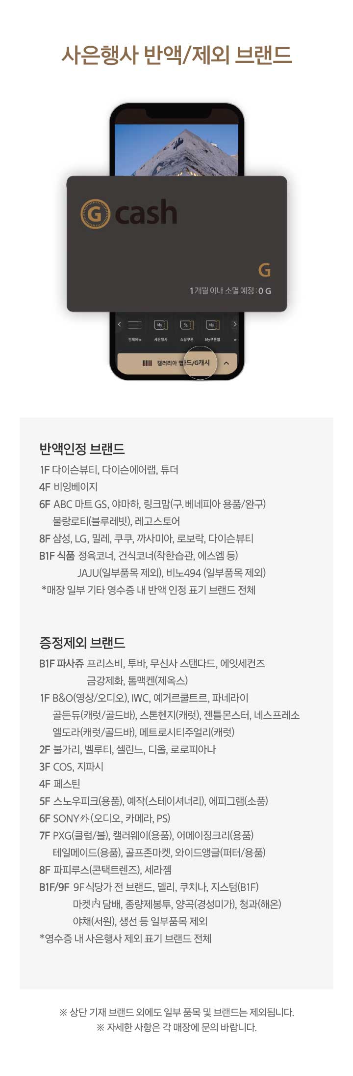 그 동안 갤러리아 수원점을 사랑해주신 고객님께 감사드립니다. 2020년 1월, 수원점은 영업종료 하였습니다. 2020년 2월 28일 오픈하는 갤러리아 광교에서 새로운 모습으로 뵙겠습니다. 감사합니다.