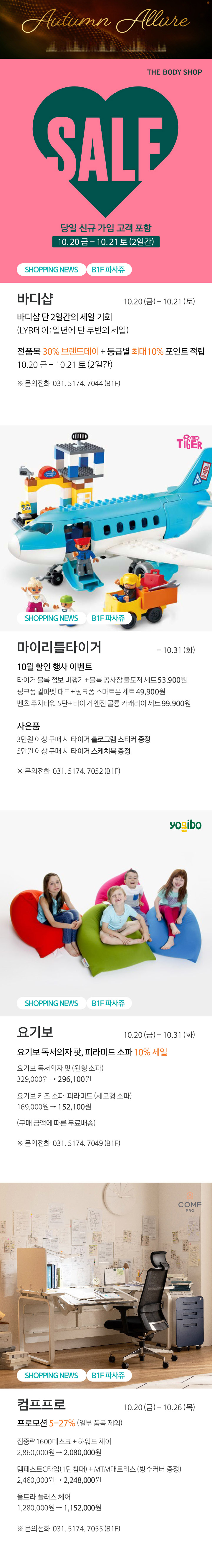 상품행사 SHOPPING NEWS 10.20 금 - 10.26 목 , 8F 페이스북에 공유하기 카카오스토리로 공유하기 PREV 목록 NEXT 설 선물세트 예약 판매는 아래 번호로 문의 부탁드립니다. 광교 031.5174.6096-9 확인