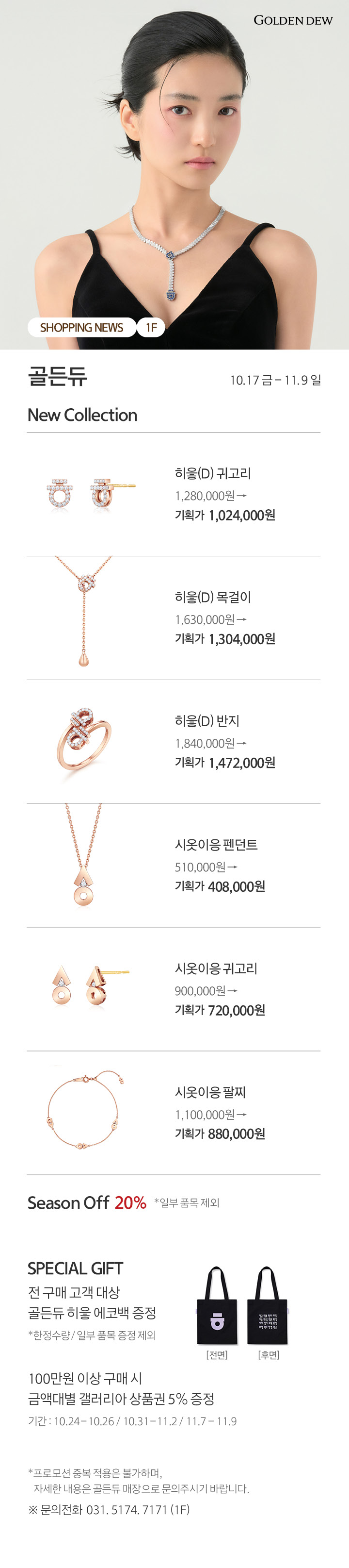상품행사 BEAUTY ISSUE 10.17-11.9, 1F 페이스북에 공유하기 카카오스토리로 공유하기 PREV 목록 NEXT 설 선물세트 예약 판매는 아래 번호로 문의 부탁드립니다. 광교 031.5174.6096-9 확인
