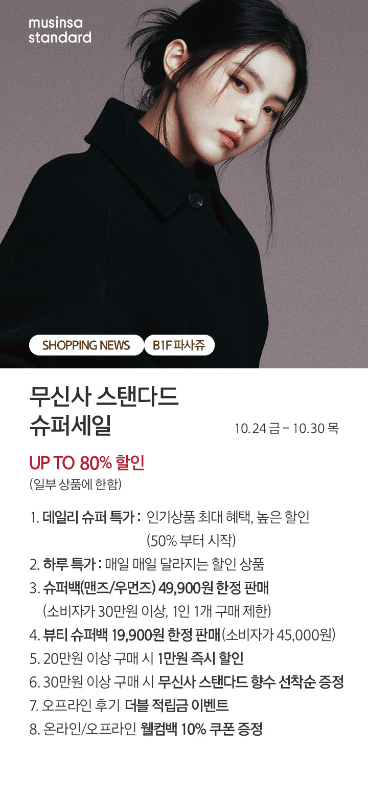 상품행사 SHOPPING NEWS 10.24-10.30, B1F 파사쥬 페이스북에 공유하기 카카오스토리로 공유하기 PREV 목록 NEXT 설 선물세트 예약 판매는 아래 번호로 문의 부탁드립니다. 광교 031.5174.6096-9 확인