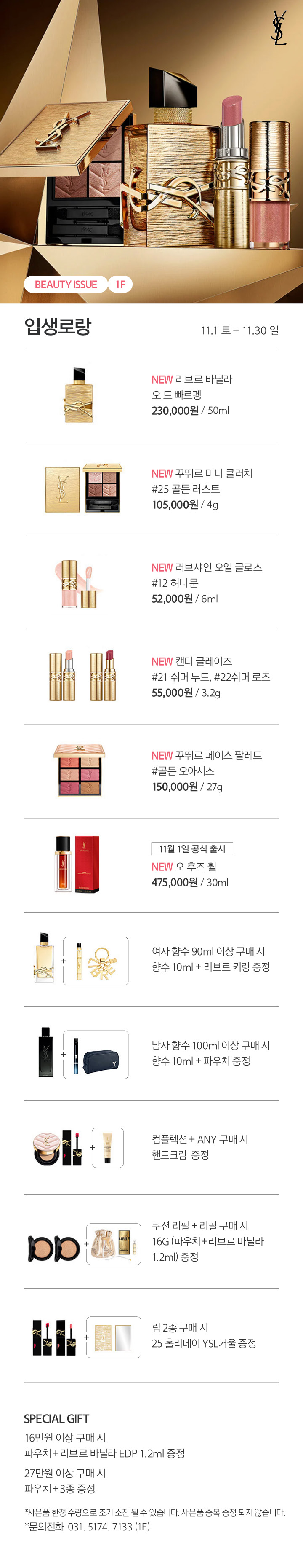 상품행사 BEAUTY ISSUE 11.1-11.30, 1F 페이스북에 공유하기 카카오스토리로 공유하기 PREV 목록 NEXT 설 선물세트 예약 판매는 아래 번호로 문의 부탁드립니다. 광교 031.5174.6096-9 확인