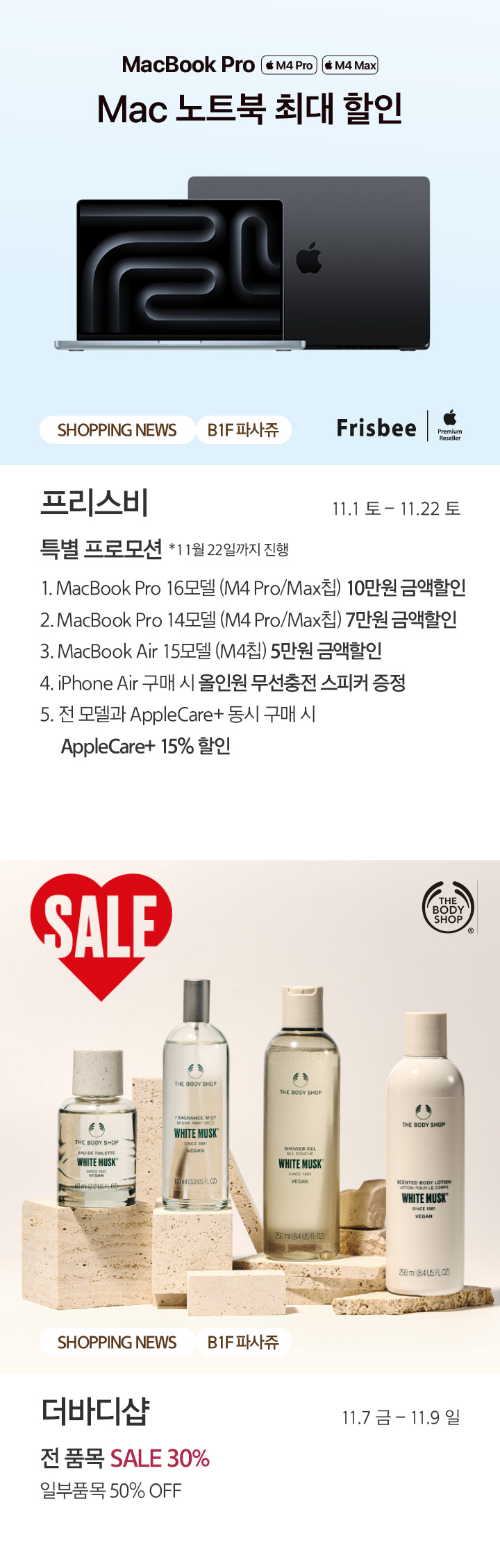 상품행사 SHOPPING NEWS 11.1- 11.22 페이스북에 공유하기 카카오스토리로 공유하기 PREV 목록 NEXT 설 선물세트 예약 판매는 아래 번호로 문의 부탁드립니다. 광교 031.5174.6096-9 확인