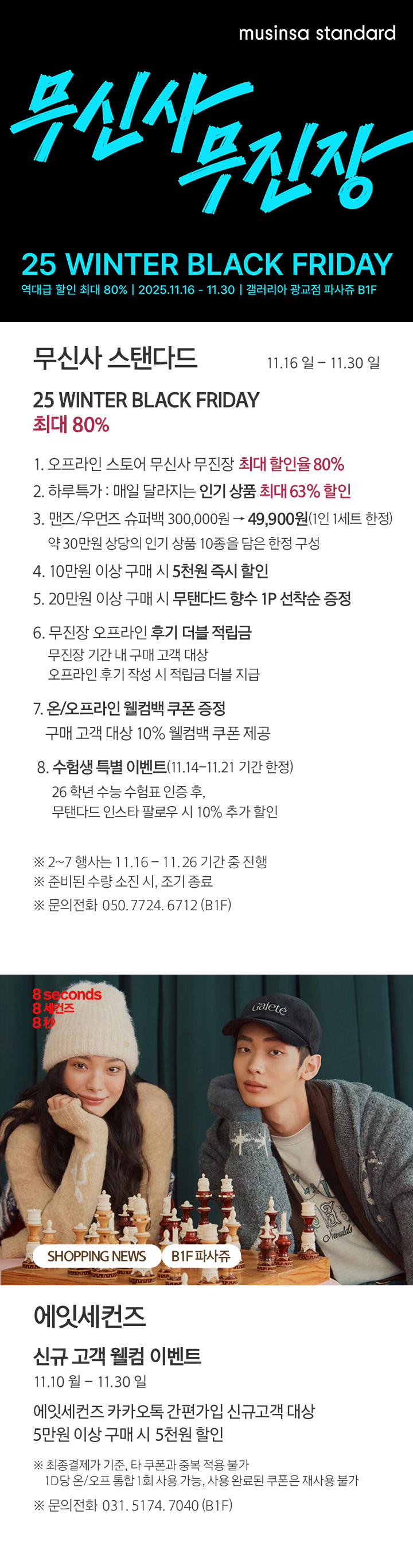 상품행사 SHOPPING NEWS 11.14-11.30, BF1 파사쥬 페이스북에 공유하기 카카오스토리로 공유하기 PREV 목록 NEXT 설 선물세트 예약 판매는 아래 번호로 문의 부탁드립니다. 광교 031.5174.6096-9 확인