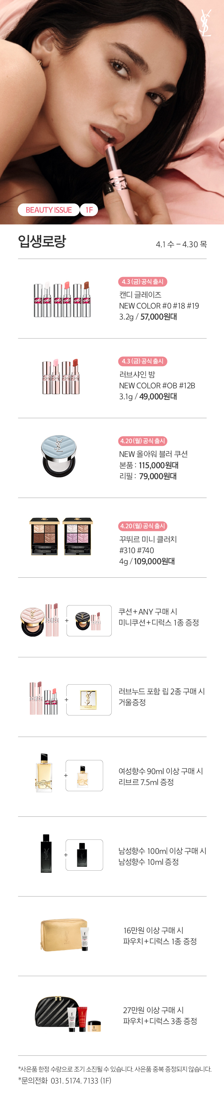 상품행사 BEAUTY ISSUE 4.1-4.30, 1F 페이스북에 공유하기 카카오스토리로 공유하기 PREV 목록 NEXT 설 선물세트 예약 판매는 아래 번호로 문의 부탁드립니다. 광교 031.5174.6096-9 확인