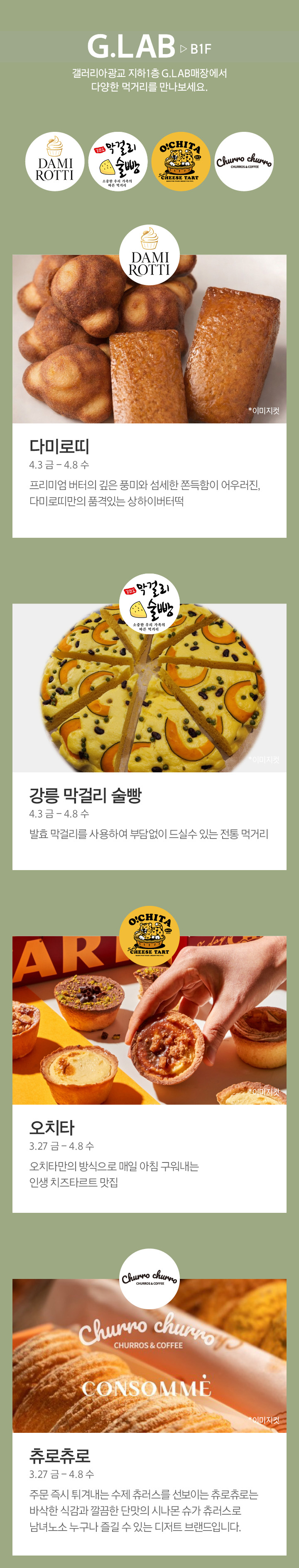 뉴오프닝&팝업 G.LAB 4.3-4.8, B1F 페이스북에 공유하기 카카오스토리로 공유하기 PREV 목록 NEXT 설 선물세트 예약 판매는 아래 번호로 문의 부탁드립니다. 광교 031.5174.6096-9 확인