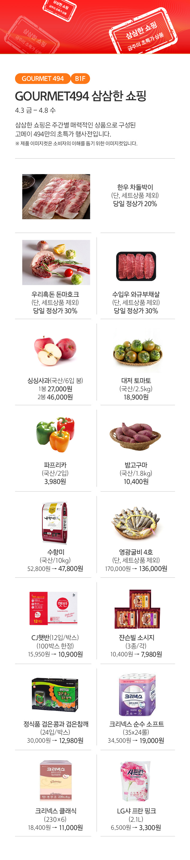 상품행사 GOURMET 494 4.3-4.8, B1F 페이스북에 공유하기 카카오스토리로 공유하기 PREV 목록 NEXT 설 선물세트 예약 판매는 아래 번호로 문의 부탁드립니다. 광교 031.5174.6096-9 확인