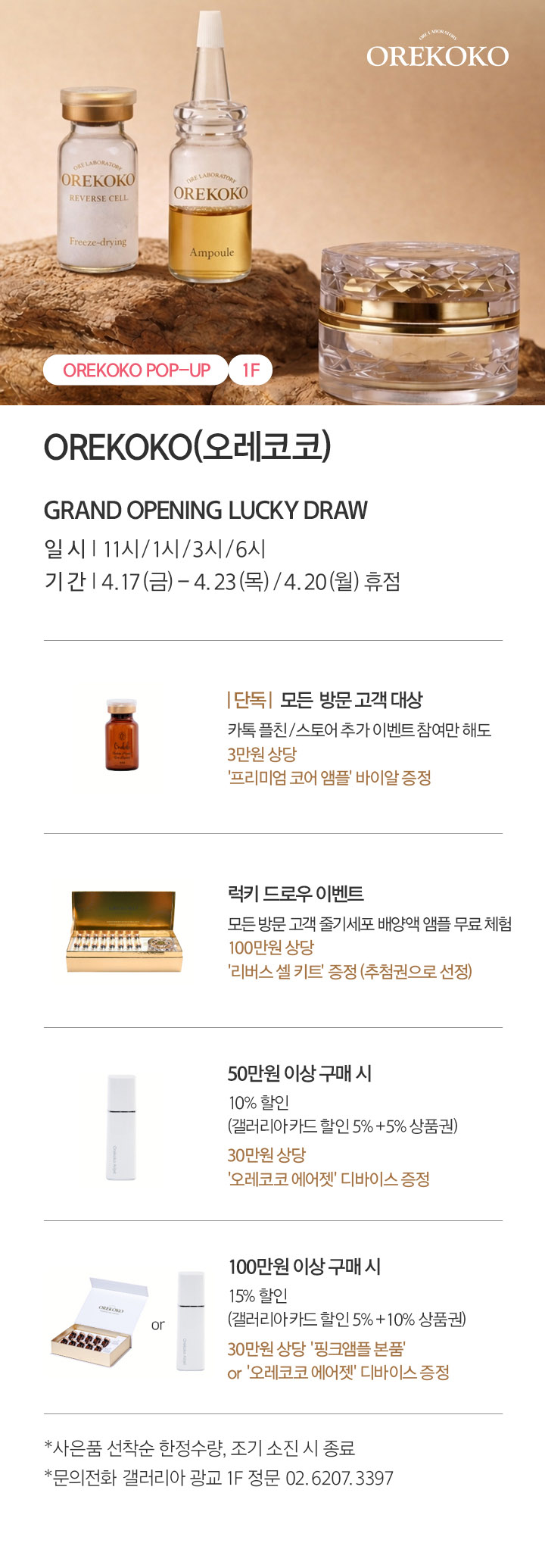 상품행사 POP-UP 4.17-4.23, 1F 페이스북에 공유하기 카카오스토리로 공유하기 PREV 목록 NEXT 설 선물세트 예약 판매는 아래 번호로 문의 부탁드립니다. 광교 031.5174.6096-9 확인
