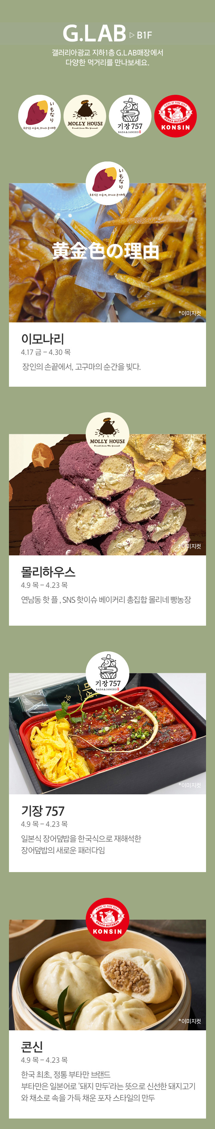 뉴오프닝&팝업 G.LAB 4.9-, B1F 페이스북에 공유하기 카카오스토리로 공유하기 PREV 목록 NEXT 설 선물세트 예약 판매는 아래 번호로 문의 부탁드립니다. 광교 031.5174.6096-9 확인