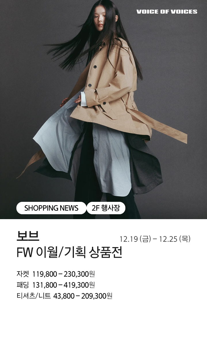 그 동안 갤러리아 수원점을 사랑해주신 고객님께 감사드립니다. 2020년 1월, 수원점은 영업종료 하였습니다. 2020년 2월 28일 오픈하는 갤러리아 광교에서 새로운 모습으로 뵙겠습니다. 감사합니다.
