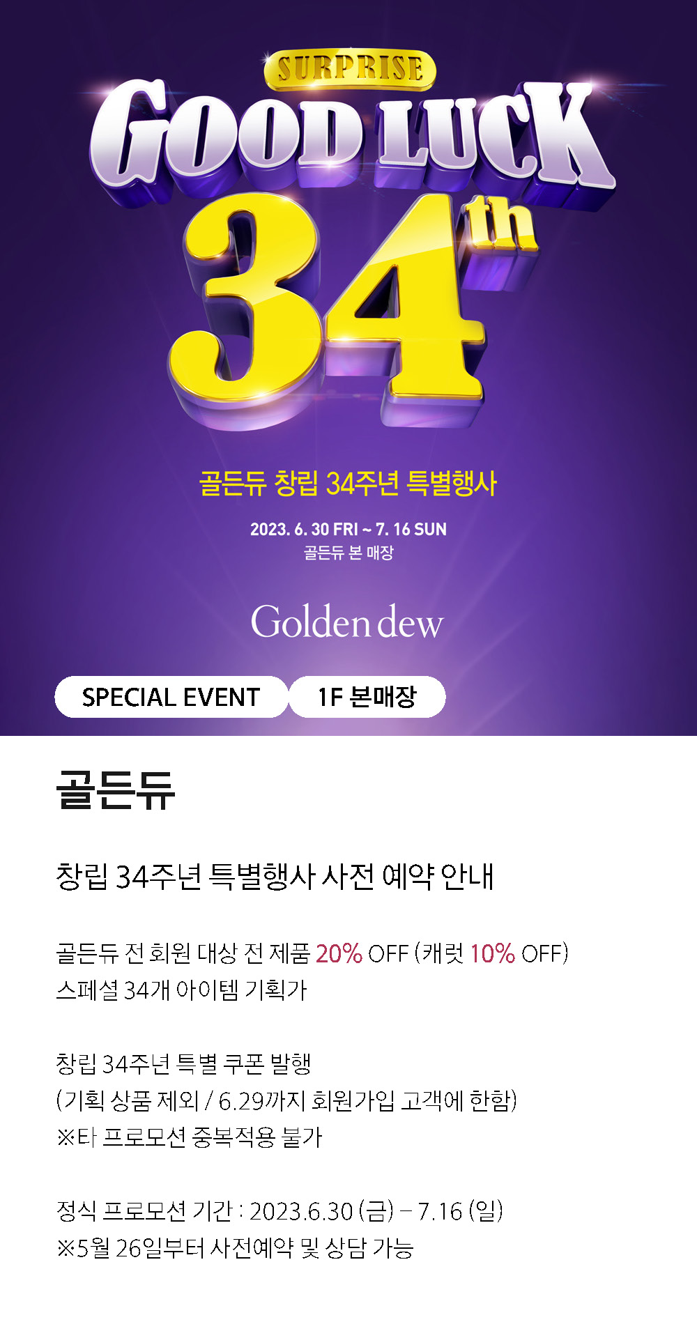 상품행사 골든듀 창립 34주년 페이스북에 공유하기 카카오스토리로 공유하기 PREV 목록 NEXT 설 선물세트 예약 판매는 아래 번호로 문의 부탁드립니다. 진주 055.791.1577, 1578 확인