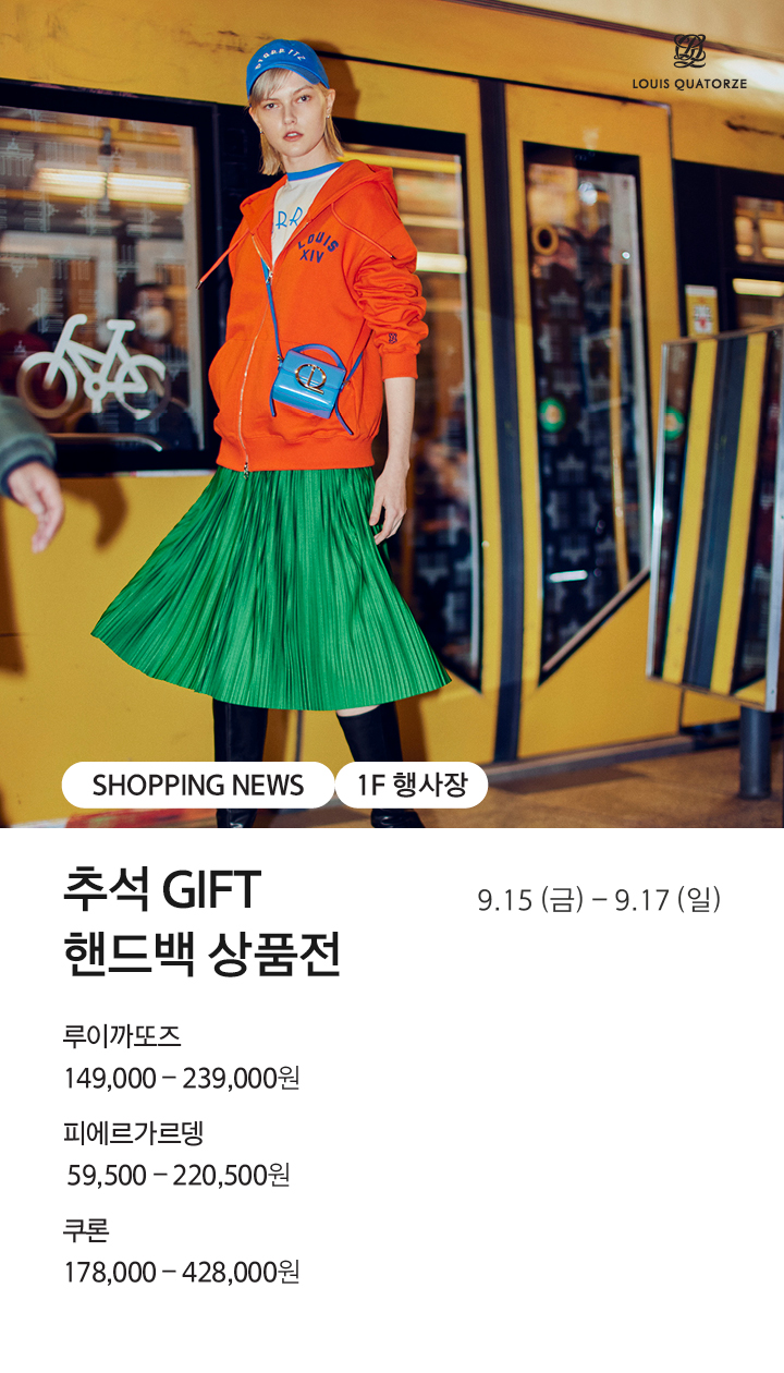 상품행사 핸드백 GIFT 페이스북에 공유하기 카카오스토리로 공유하기 PREV 목록 NEXT 설 선물세트 예약 판매는 아래 번호로 문의 부탁드립니다. 진주 055.791.1577, 1578 확인