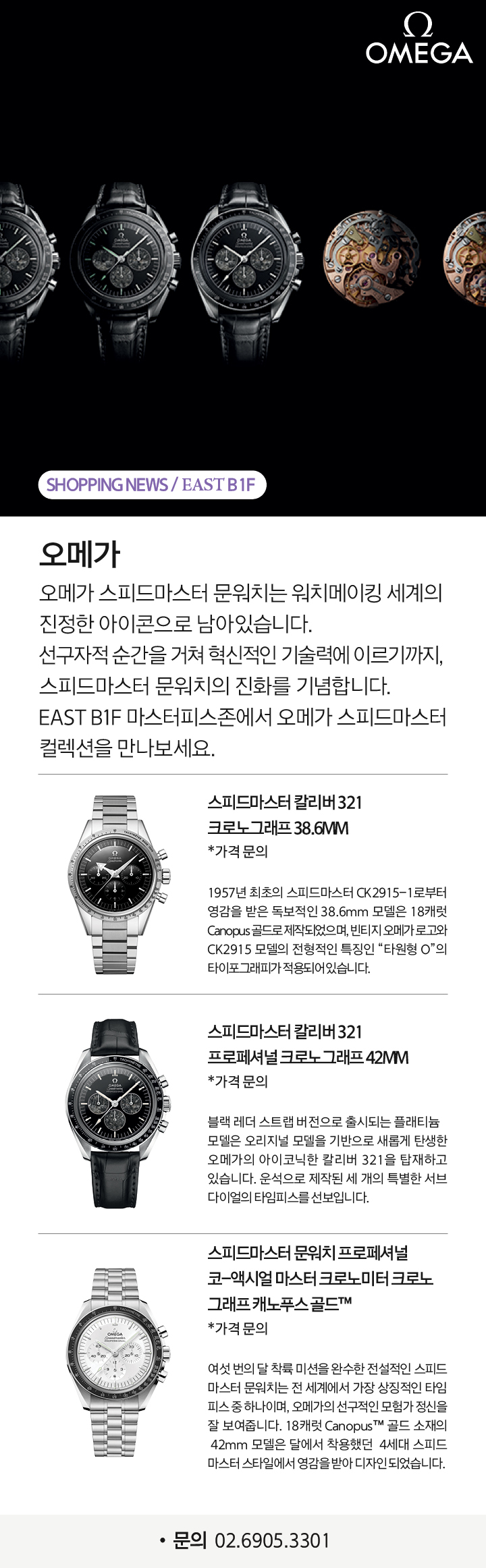 상품행사 SHOPPING NEWS - 오메가 0 페이스북에 공유하기 카카오스토리로 공유하기 PREV 목록 NEXT 설 선물세트 예약 판매는 아래 번호로 문의 부탁드립니다. 명품관 02.3449.4061 확인
