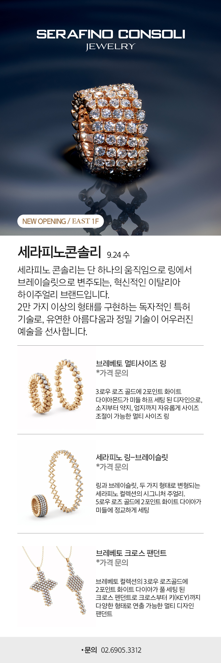 뉴오프닝&팝업 세라피노콘솔리 페이스북에 공유하기 카카오스토리로 공유하기 PREV 목록 NEXT 설 선물세트 예약 판매는 아래 번호로 문의 부탁드립니다. 명품관 02.3449.4061 확인