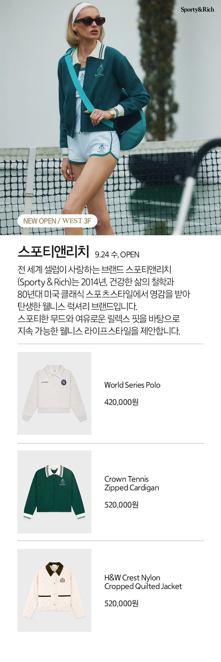 뉴오프닝&팝업 스포티앤리치 페이스북에 공유하기 카카오스토리로 공유하기 PREV 목록 NEXT 설 선물세트 예약 판매는 아래 번호로 문의 부탁드립니다. 명품관 02.3449.4061 확인
