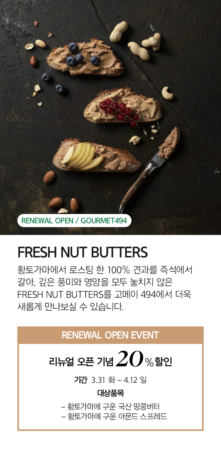 뉴오프닝&팝업 리뉴얼 오픈_넛버터 페이스북에 공유하기 카카오스토리로 공유하기 PREV 목록 NEXT 설 선물세트 예약 판매는 아래 번호로 문의 부탁드립니다. 명품관 02.3449.4061 확인