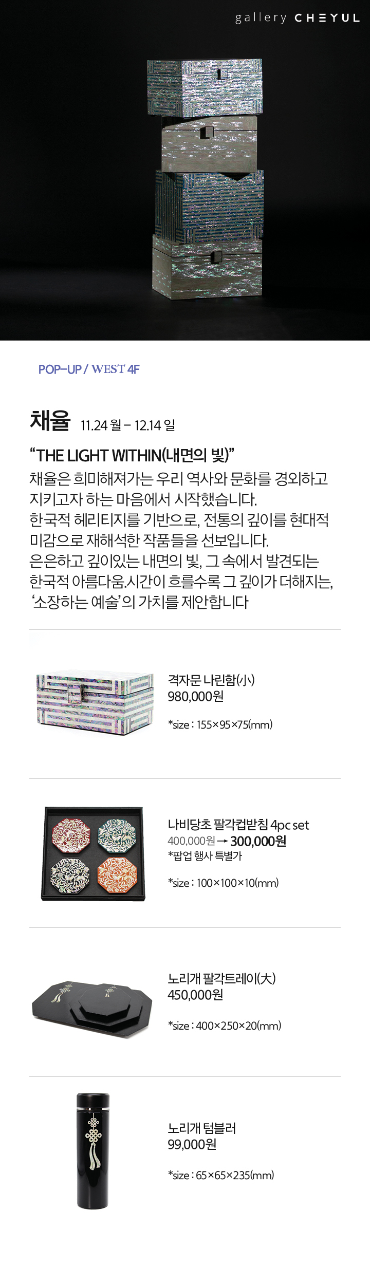 그 동안 갤러리아 수원점을 사랑해주신 고객님께 감사드립니다. 2020년 1월, 수원점은 영업종료 하였습니다. 2020년 2월 28일 오픈하는 갤러리아 광교에서 새로운 모습으로 뵙겠습니다. 감사합니다.