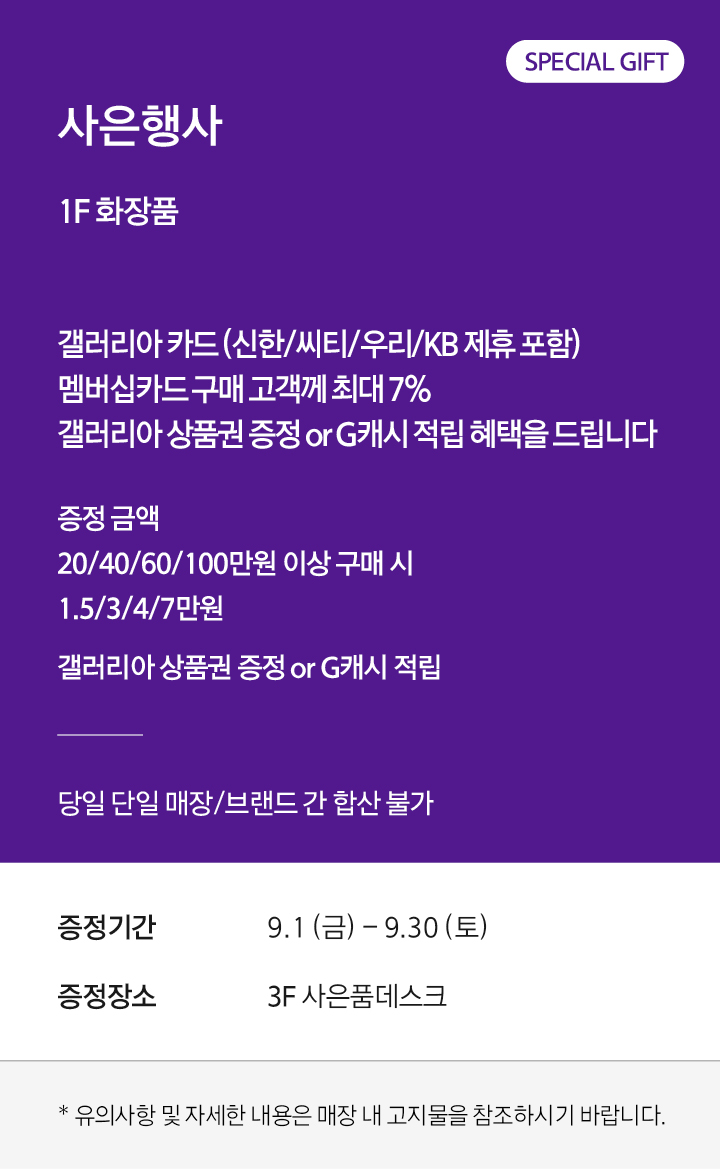 9.1 - 9.30, 3F 사은품데스크