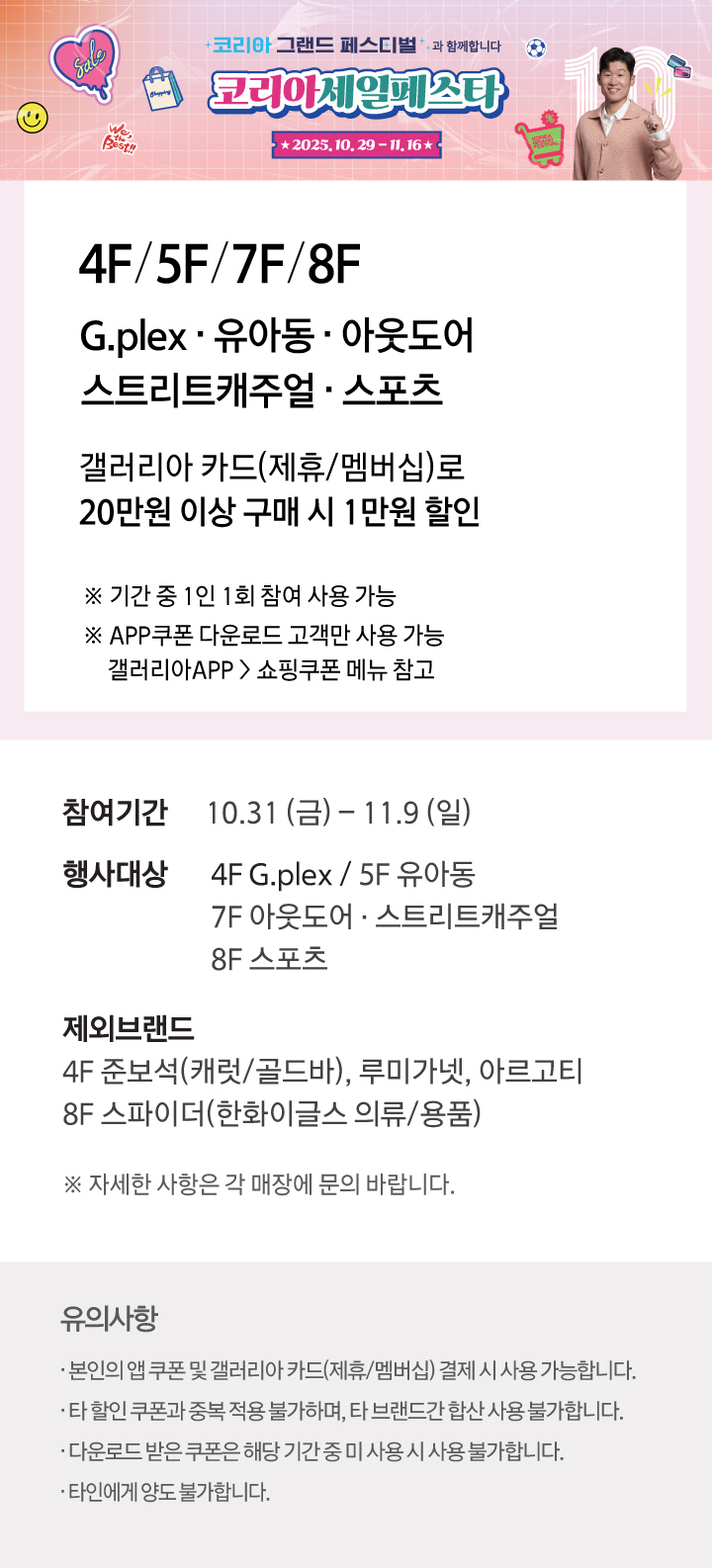 그 동안 갤러리아 수원점을 사랑해주신 고객님께 감사드립니다. 2020년 1월, 수원점은 영업종료 하였습니다. 2020년 2월 28일 오픈하는 갤러리아 광교에서 새로운 모습으로 뵙겠습니다. 감사합니다.