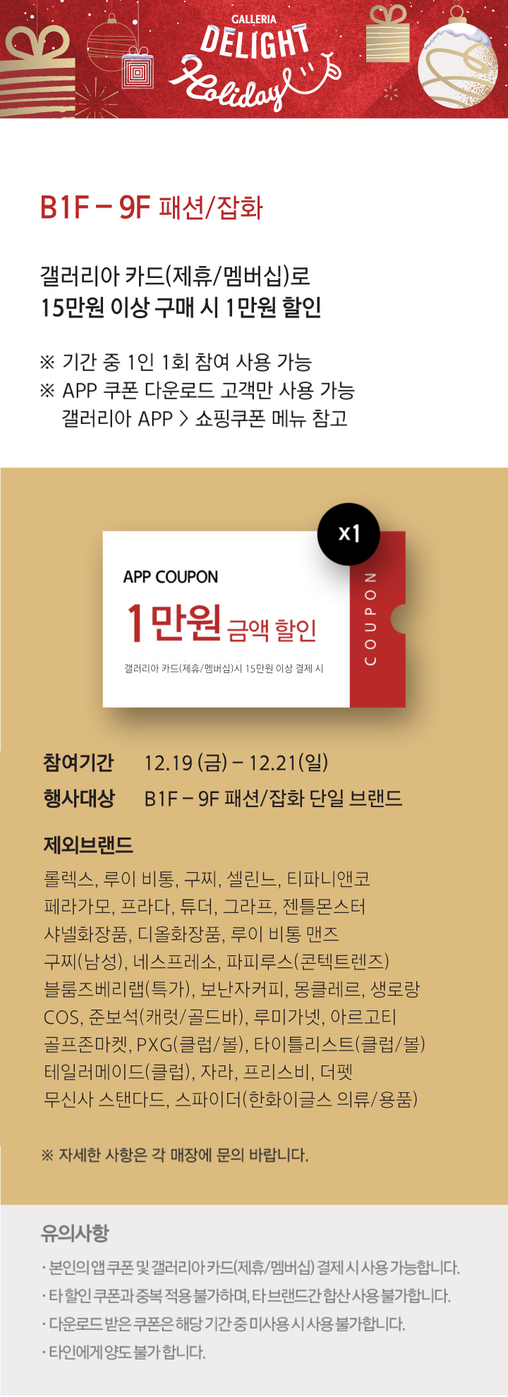 12.19 - 12.21, 갤러리아 APP을 다운로드 받으세요