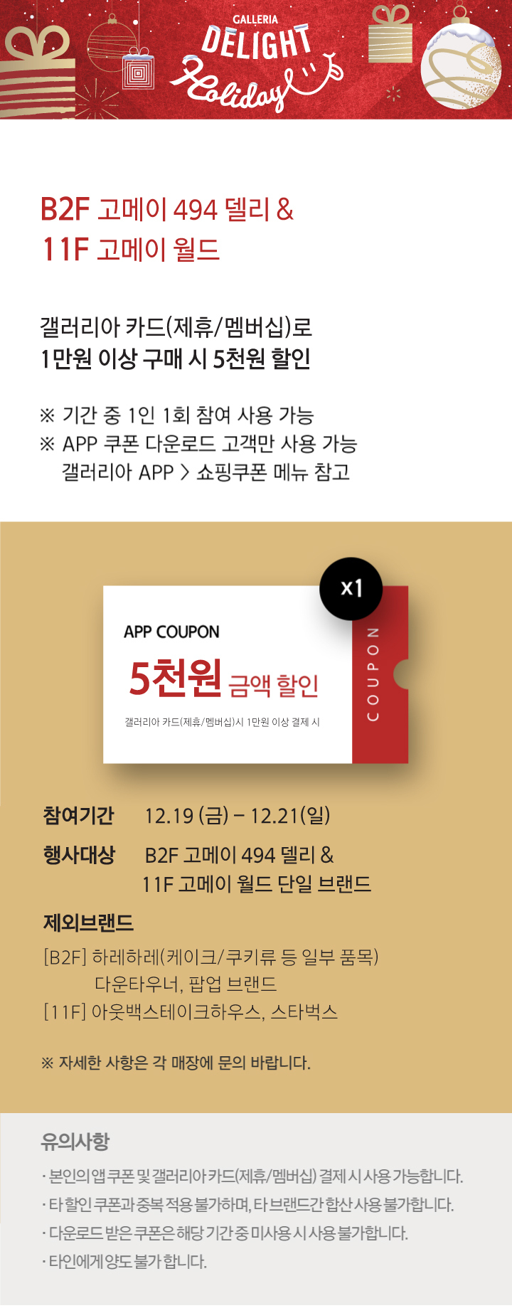 12.19 - 12.21, 갤러리아 APP을 다운로드 받으세요