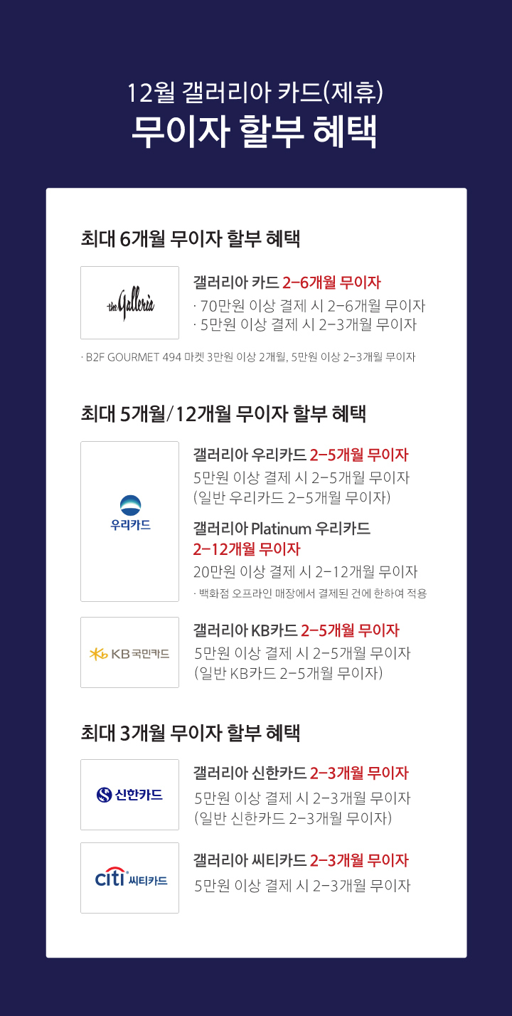 12월 갤러리아 카드(제휴) 무이자 할부 혜택