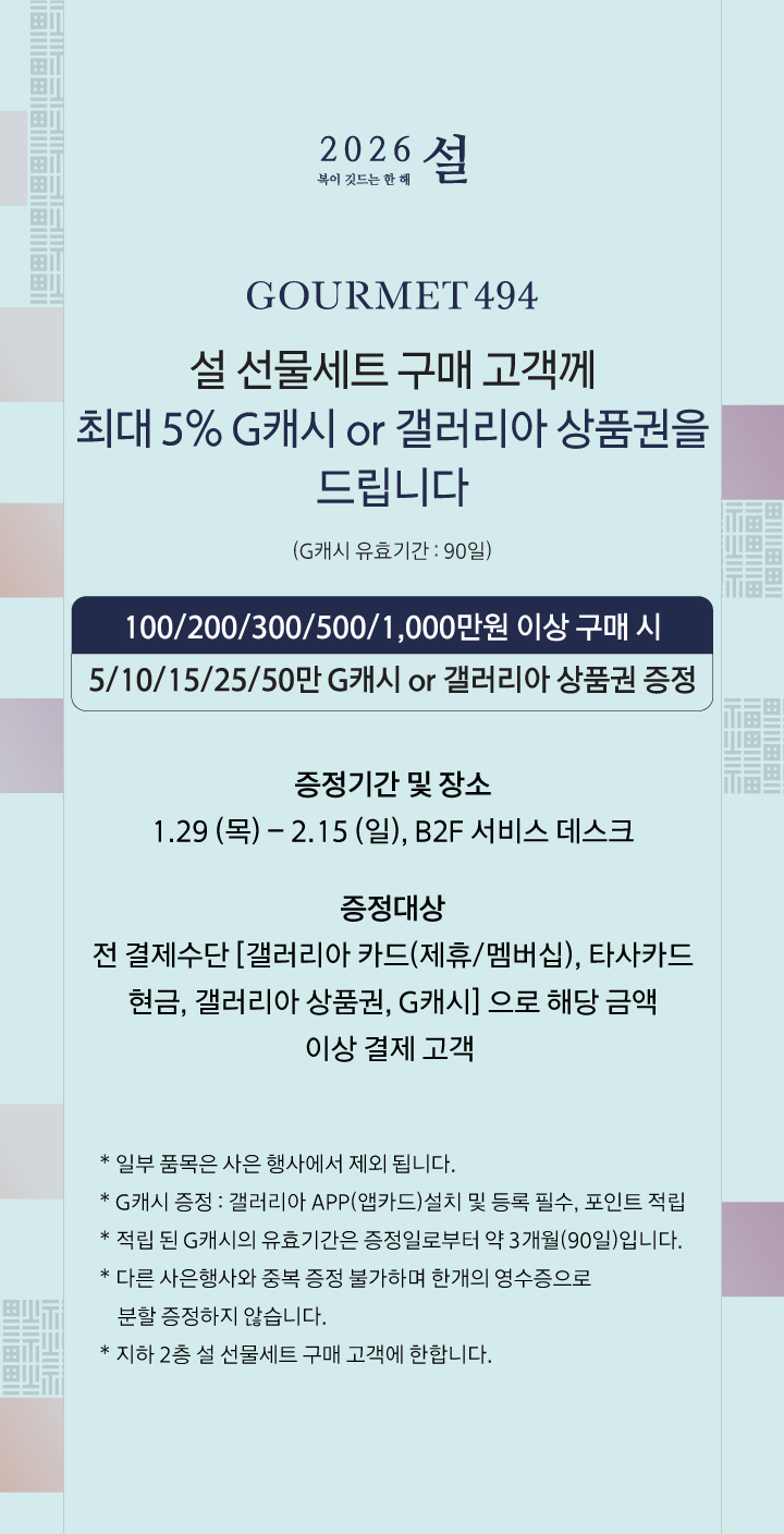 그 동안 갤러리아 수원점을 사랑해주신 고객님께 감사드립니다. 2020년 1월, 수원점은 영업종료 하였습니다. 2020년 2월 28일 오픈하는 갤러리아 광교에서 새로운 모습으로 뵙겠습니다. 감사합니다.