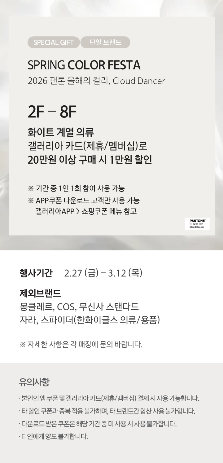 2.27 - 3.12, 갤러리아 APP을 다운로드 받으세요