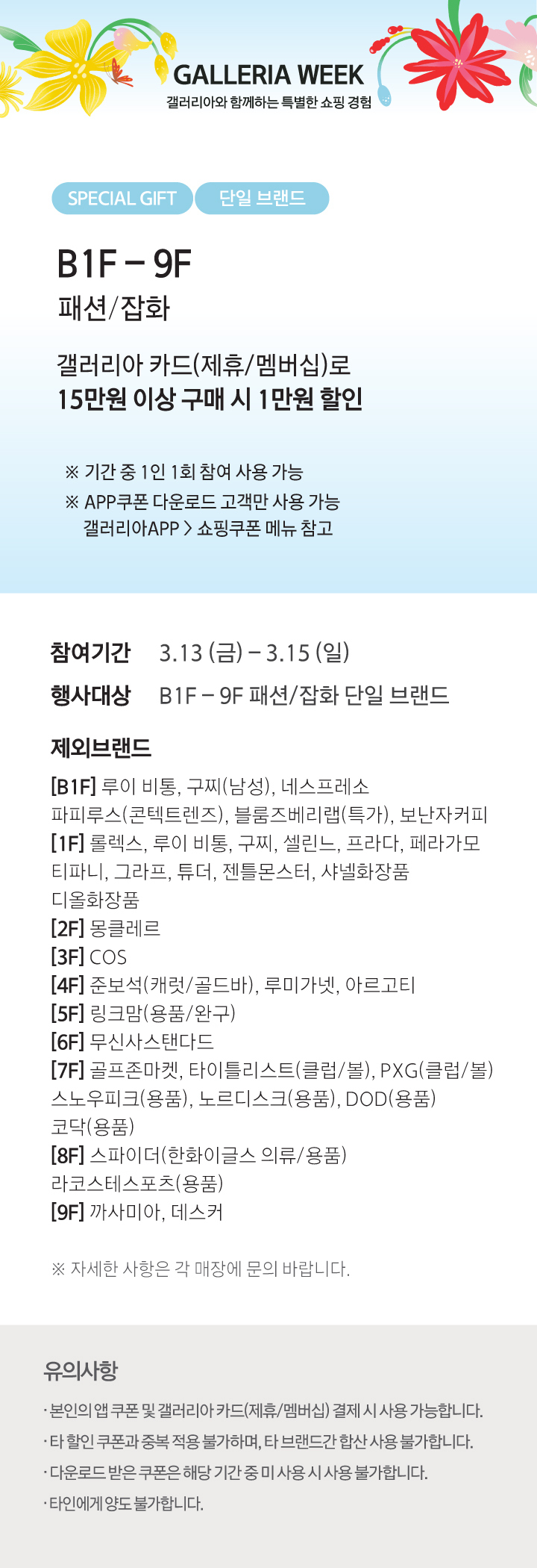 3.13 - 3.15, 갤러리아 APP을 다운로드 받으세요