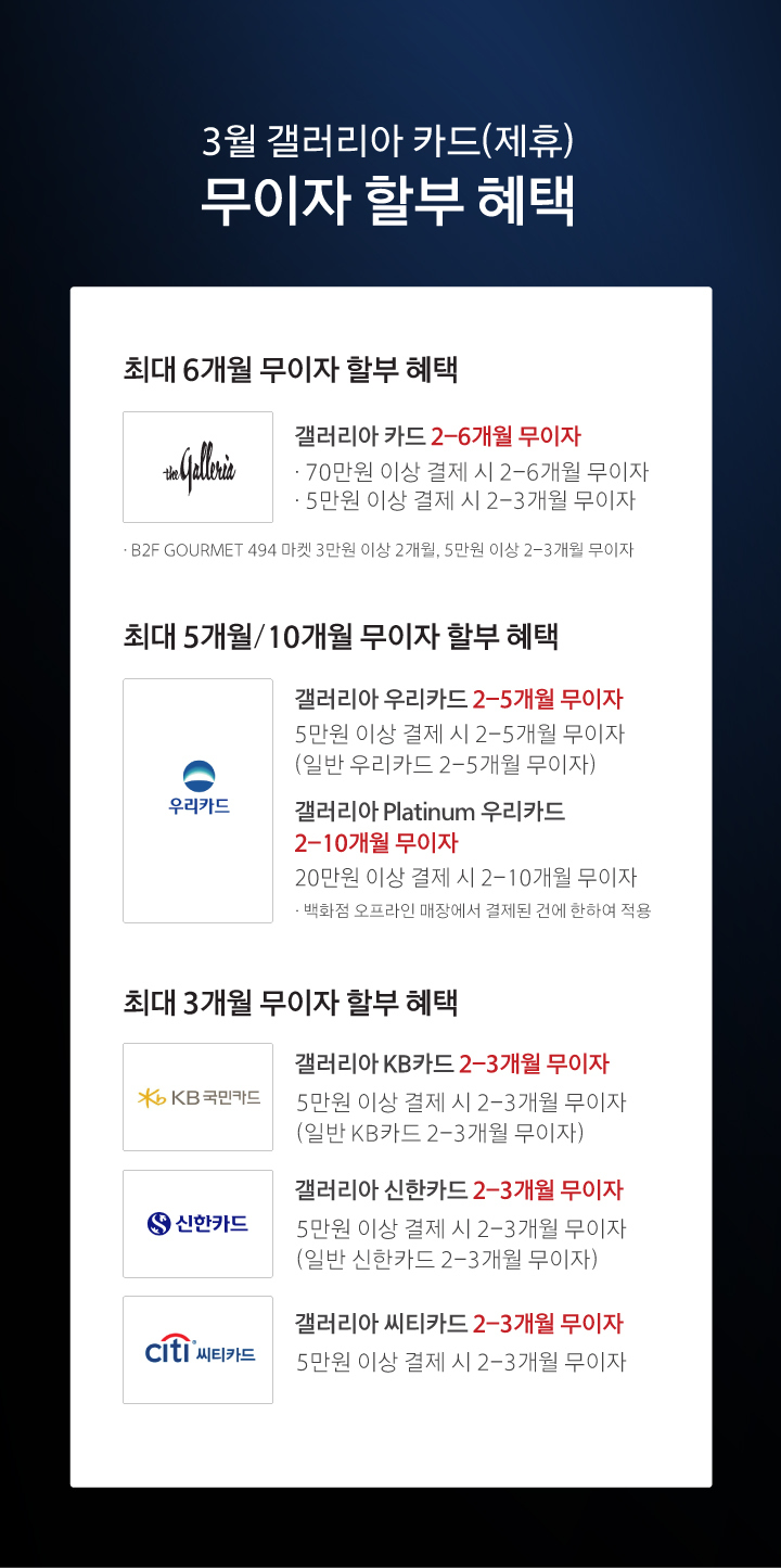 3월 갤러리아 카드(제휴) 무이자 할부 혜택
