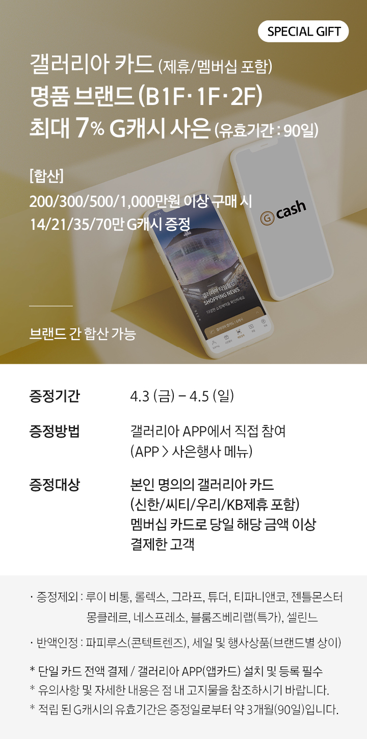 4.3 - 4.5, 갤러리아 APP을 다운로드 받으세요