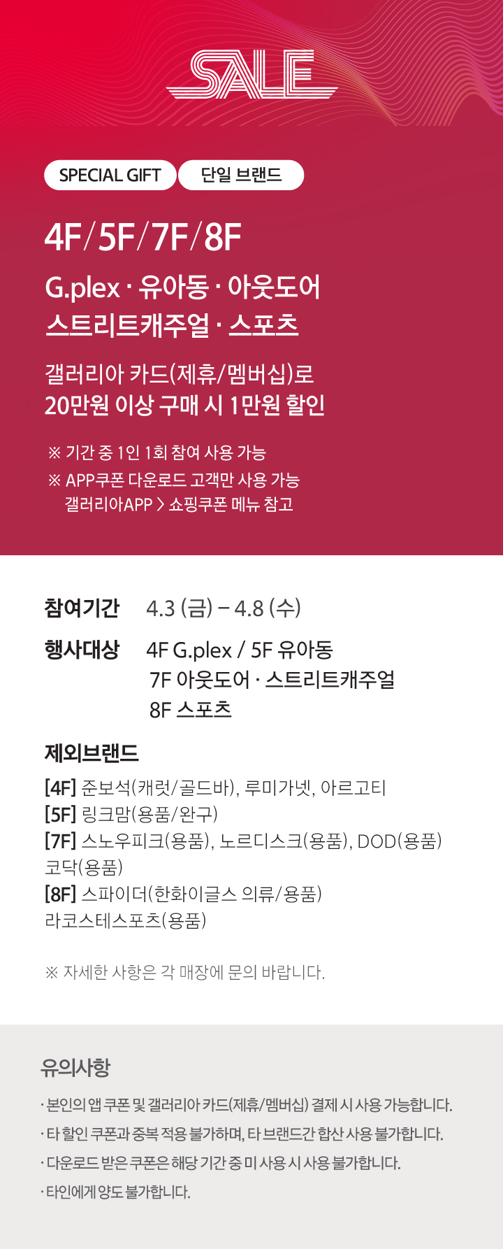 4.3 - 4.8, 갤러리아 APP을 다운로드 받으세요